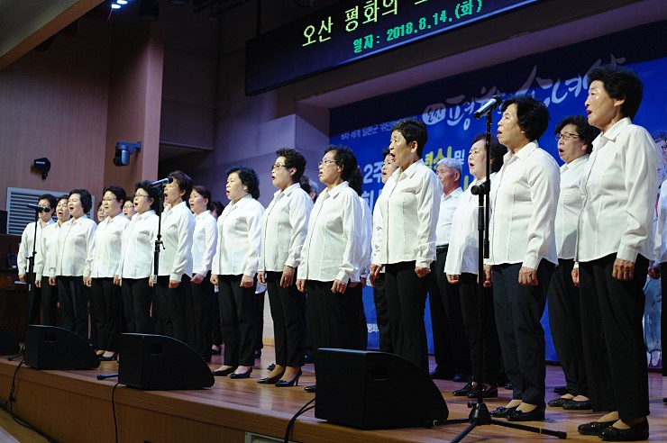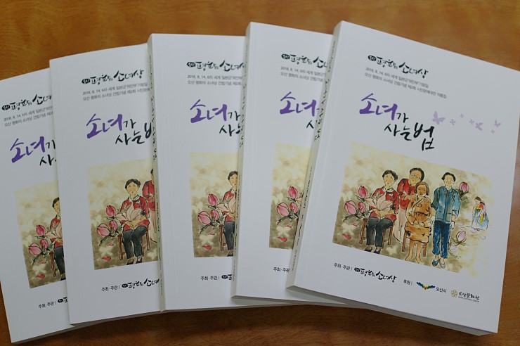 지난 8월 14일 오산시청 3층 대회의실에서는 오산 평화의 소녀상(대표 이숙영) 건립 2주년 기념식 및 제2회 문예대전 시상식이 있었다. 8월 14일은 일본군 '위안부' 피해자인 김학순(1924~1997) 할머니가 처음으로 일본군 위안부 피해 사실을 증언한 날이다. 김학순 할머니는 1991년 8월 14일 '위안부' 생존자 중 처음으로 피해 사실을 공개 증언했다. 할머니 공개 증언 이후 생존자들이 잇따라 피해 사실을 증언하면서 일본군 '위안부' 문제가 인권 문제로 국제 사회에 알려지게 되었다. 지난해 2017년 12월, 국회 본회의에서는 '일제하 일본군 위안부 피해자에 대한 보호·지원 및 기념사업 등에 관한 법률'이 통과되면서 매년 8월 14일을 '일본군 위안부 피해자 기림의 날' 공식 국가 기념일로 지정하였다. 이는 일본군'위안부' 문제를 국내외에 알리고 일본군'위안부' 피해자를 기리기 위하여 제정된 국가 기념일이다. ![]() ![]() 기념식에 앞서 여는 공연으로 김준일 무용가 '전진 희망 꽃을 피워라!'라는 몸짓 퍼포먼스 공연이 있었다. ![]() 개회 선언 후 국민의례 순서 시간, 기념식이 진행되는 대회의실 3층은 오산 시민들로 가득 메워졌다. ![]() 오산 평화의 소녀상 대표 이숙영 씨는 취임사에서 할머니들에게는 작은 위로가, 시민들에게는 아픔을 기억하는 역사의 현장, 우리 모두에게는 평화를 위한 기도가 되기를 바라는 마음에서 기념식을 가지게 되었다고 하였다. 소녀상 운동을 하는 이들은 할머니가 바라는 세상을 알기에 멈출 수가 없다고 하였다. 단 하루를 살아도 날고 싶다는 할머니들의 간절한 염원을 나비에 담았다. 피해자에서 벗어나 평화, 인권, 여성 운동가로 날아오른 할머니들의 염원이 제대로 가치를 발휘하기 위해서는 시민들의 관심과 참여가 있어야 함을 강조하였다. ![]() ▶ 올해도 많은 시민들이 문예대전에 참여하였다. 지난해에는 '아직은 수요일' 작품집을 발간하고 올해도 수상자들의 작품과 입선작을 선별하여 수록하였다. 오산 평화의 소녀상 문예대전은 잘못된 역사를 바로잡고 미래 세대에 평화 인권 희망의 소중함을 일깨우기 위한 기록으로 매년 실시된다. 올해로 2회를 맞이한 문예대전이다. 2017년에 이어 2회를 맞아 진행된 문예대전 출품된 작품들은 예년에 비해 수준이 크게 향상되었다는 후문이다. 심사위원들은 심사를 진행하는 동안 먹먹해진 가슴을 지울 수 없었다고 전했다. 출품된 작품마다 역사의 아픔에서 다시는, 다시는 이 같은 아픔이 반복되지 않았으면 하는 절절한 염원이 담겨있다고 하였다. 문예대전은 순수한 아마추어들이 참여하는 행사로 자신의 생각이나 서정을 글로 표현하여야 한다. 이날 문예대전 대상은 '소녀가 사는 법'(운문)으로 일반부 김명숙 씨가 수상하였다. ![]() ![]() ![]() ▶ 평화와 인권이 사라진 시대를 안타까워하는 마음을 시로 표현하여 수상한 매홀초(5) 김하린 학생이다. ![]() 올해는 평화 인권상을 제정했다. 여성 인권문제에 관심을 기울이고 오산시민과 미래세대가 평화와 인권운동의 주체가 되도록 기여한 김미정 대표가 선정되었다. ![]() ▶ 닫는 공연으로 오산 물향기 시니어합창단이 '홀로아리랑, 고향의 봄'을 합창하였다. 오산 평화의 소녀상 건립 2주년 기념식과 문예대전 시상식이 진행되는 동안 대회의실 로비에서는 뜻깊은 전시들이 더불어 진행되고 있었다. (사) 어린이 도서연구회 오산지회에서는 한중일 평화 그림책을 전시하고 한 켠에는 지난해 대상을 받았던 그림도 함께 전시하고 있었다. 그중 오산 출신 작가의 "꽃 할머니" 작품도 선보였다. "꽃 할머니"는 '위안부' 피해자인 고 심달연 할머니 증언을 토대로 그려진 책이다. 2007년 한중일 3개국이 기획한 평화 그림책 중 하나로 2010년 중국에서 먼저 발간된 이래 일본에서 8년 만에 공개된 작품이기도 하다. 일본에서 출간될 당시, 일본 우익 세력들은 살해 위협까지 일삼았다. 이러한 두려움을 무릅쓰고 "꽃 할머니"는 일본어로 출간되었다. ![]() 대회의실 옆에서는 소녀상과 함께 사진을 찍은 여러 사진들을 전시하였다. '빈의자와 약속'이라는 주제로 사계절 소녀상과 함께한 오산 시민들의 사진들이다. 평화의 소녀상 빈 의자는 잊지 않고 함께 하겠다는 우리 약속이다. ![]() 끝나지 않은 수요일, 지금도 여전히 진행되고 있는 수요일 집회 때 참여한 할머니들의 모습과 일본의 사죄를 부르짖는 할머니들을 담은 사진들도 함께 전시했다. ![]() "나는 나비가 될끼다. 세상을 훨훨 날아다닐끼다..." - '위안부' 할머니- "나비야 훨훨 날아서 나의 고향 다녀오겠니 나비야 훨훨 날아서 고향 소식 전해다오 " - 최왕국 작사 작곡 '나비야' - 위안부' 할머니의 염원, "나비야"라는 노래에서도 할머니들의 가슴 아픈 마음이 그대로 전해져 온다. 이날 소녀상 기념식에 참여한 시민들의 가슴에 여러 색의 나비가 앉아 있었다. 소녀상 뒤편 한 무더기 날아오르는 나비는 인간의 존엄과 자유 의지를 억압하는 모든 것들로부터부터 벗어나 참 해방으로 나아가려는 몸짓이라 하였다. 운천중 학부모님이 손수 만든 여러 나비는 기념식을 준비한 자원봉사 손길이었다. 기념식에 참여한 시민들에게 손수 만든 나비를 드