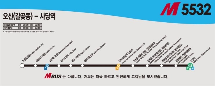 다른 버스 노선이랑 다르게 M5532 버스는 서는 곳이 많지 않아요.