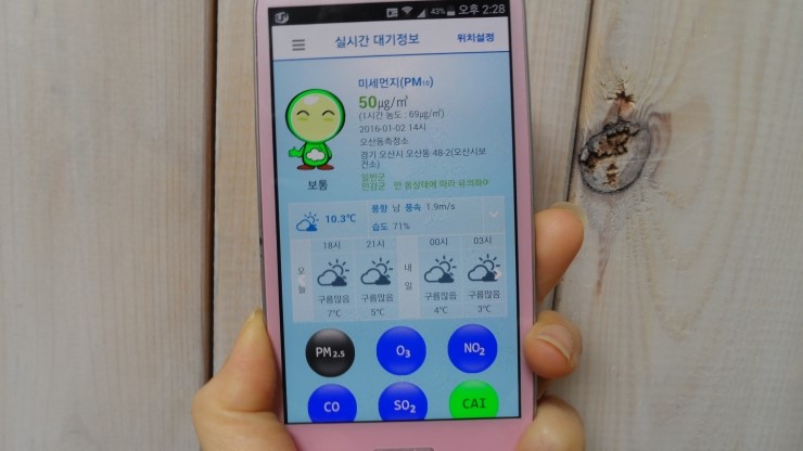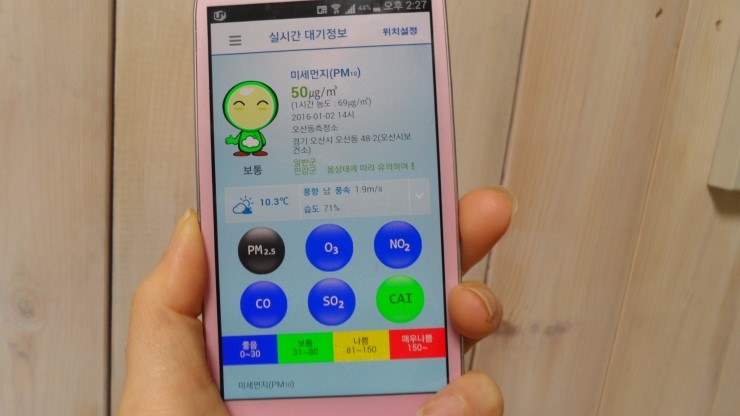 또한 오산시의 평소 대기 정보가 궁금할경우 "우리동네 대기질" 앱을 이용하여 대기상태 파악이 가능합니다. 환경부 및 한국 환경 공단과의 협력을 통해 개발된 애플리케이션으로써 한눈에 쏘옥~우리동네의 대기질 수치를 확인해 볼 수 있습니다. 미세먼지의 이모저모를 살펴 보았는데요, 미세먼지로부터 우리의 부모님과 우리의 자녀들, 또 우리 각자의 건강을 지켜나가는 똑똑한 오산 시민이 되어봅시다.