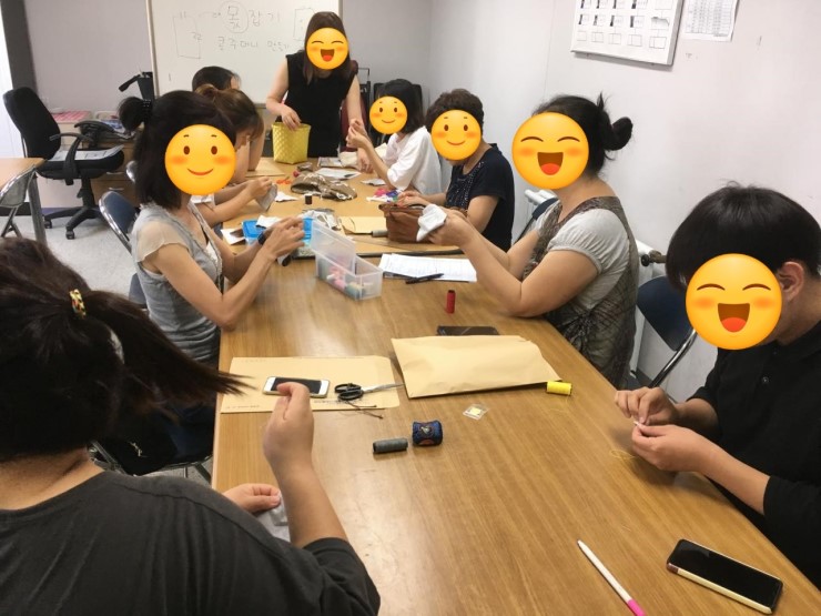 매 수업시간마다 만들기가 빠지지 않았는데요. 편을 나누어 만든 제기를 보자기 위에서 튕기는 게임도 했답니다.