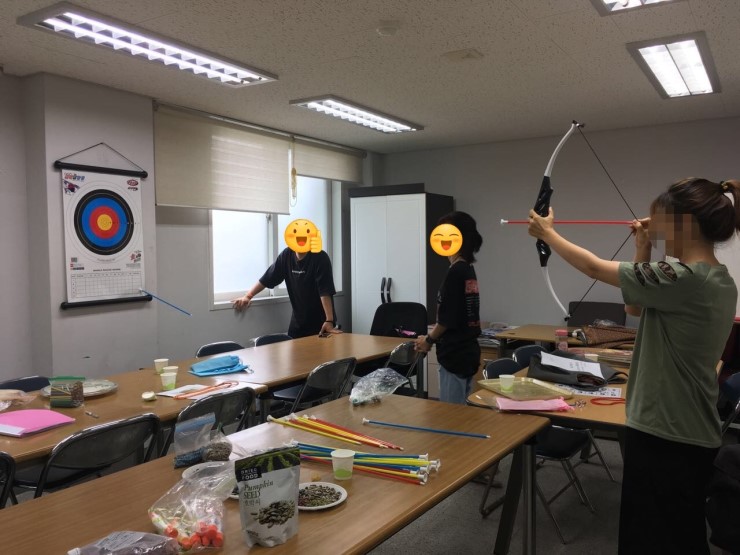 양궁선수처럼 활을 쏴 보기도 하고 오랜만에 종이카드(아자카드)놀이도 해보았습니다.