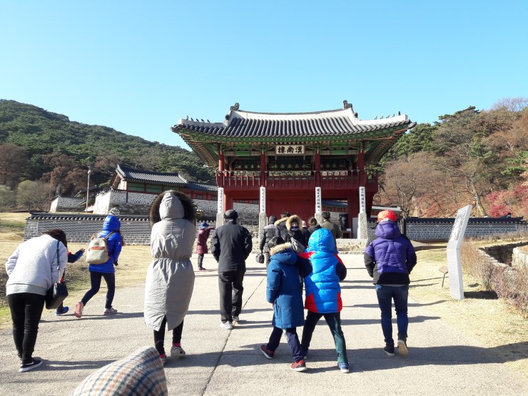 ▲ 남한산성 행궁의 첫 번째 문인 한남루 오후에는 최근 영화 '남한산성'이 개봉된 이후 더 핫한 관광코스가 된 남한산성으로 갔습니다. 휴일이면 내방객이 2천여 명에 달한다고 하니 굉장하지요? 유네스코에 등재된 곳이기도 하지요. 1900년대 초까지만 해도 실제 주민이 살았던 장소이기도 합니다.