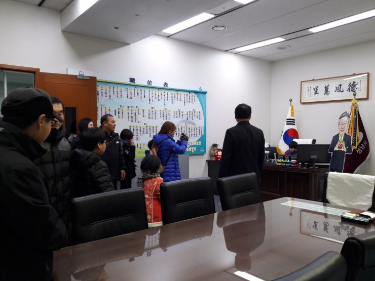 ▲ 이재명 성남시장실 방문 한때 호화청사라는 오명으로 유명했던 성남시청이 시민에게 공간을 내어주고, 시장실은 2층의 시청 홍보관 옆으로 옮겨와 있었는데요. 방문한 아이들에게 친숙하라고 온갖 캐릭터 인형들로 책상을 장식해두었던 것이 인상적이었네요.