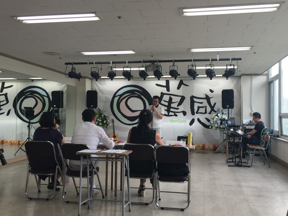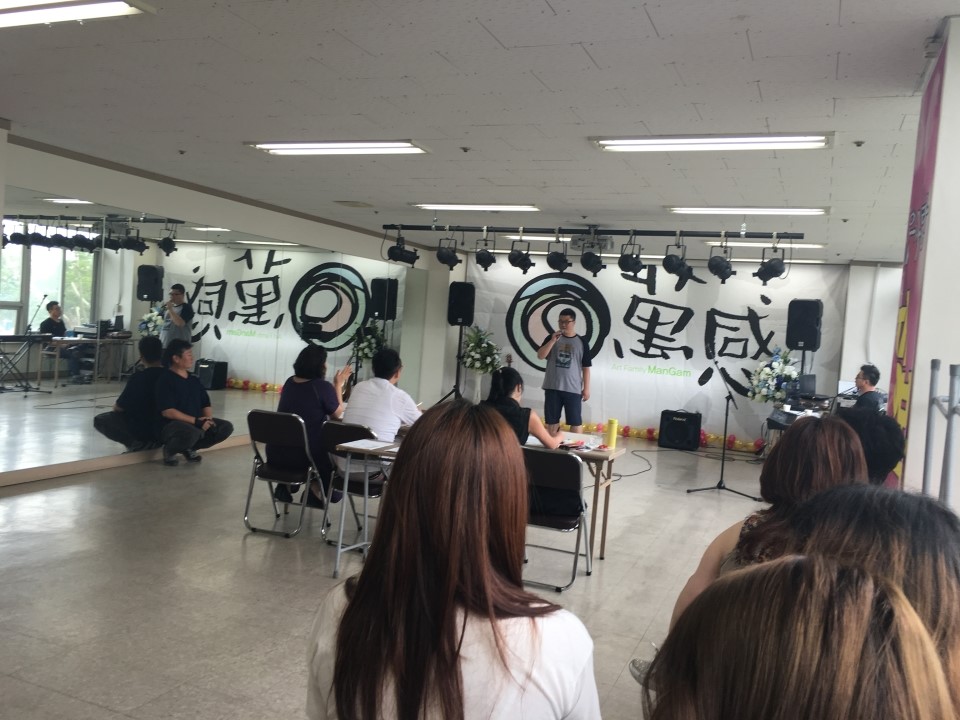 진행이 중간 쯤 흐르자 아트패밀리 만감 담당자의 요청으로 에어컨 상태가 좋은 예심장으로 옮기니 참가자 외에 친구, 가족, 지인들이 몰려들며 80평 남짓한 예심장이 와글와글 북적였고 박수와 함성으로 고조되어 순간 공연장 같은 느낌도 들었다.