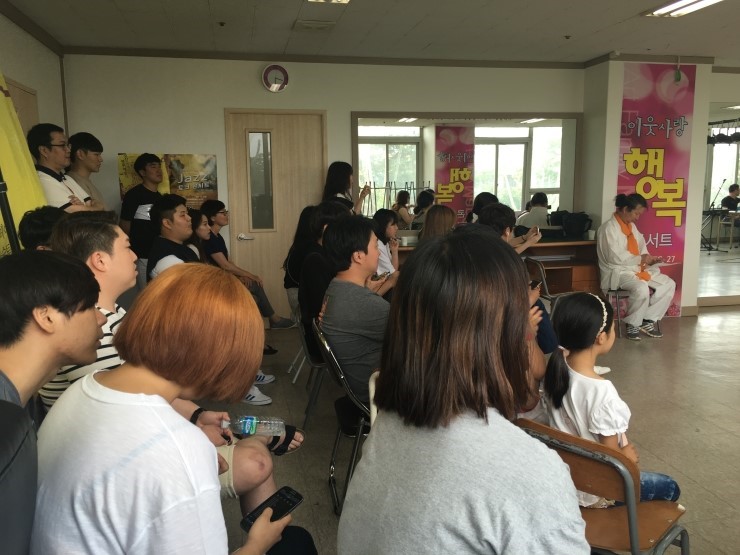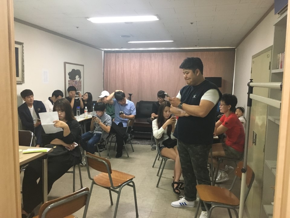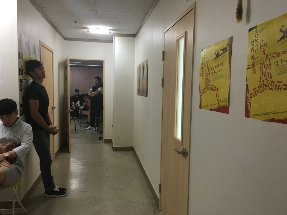 참가자 명단을 보니 총 35명이었고 최연소 10대부터 60대 최고령까지 다양했다. 대기실에서는 저마다 이어폰을 낀 채 무언가를 보고 열심히 중얼거리기도 하고, 복도에서 발성연습을 하는가 하면 화장실에서 안무연습을 하는 학생도 보였다. 대기실 다른 한쪽에서는 떠들고 웃고 있지만 긴장하고 초조해하는 얼굴은 감출 수 없었고, 어느 커플은 꿀밤놀이를 하며 긴장을 풀기도 하였다.