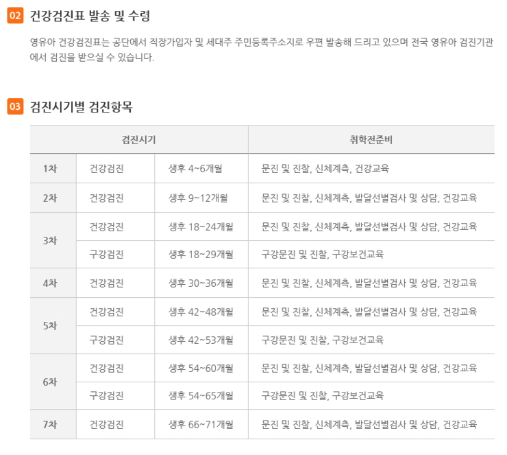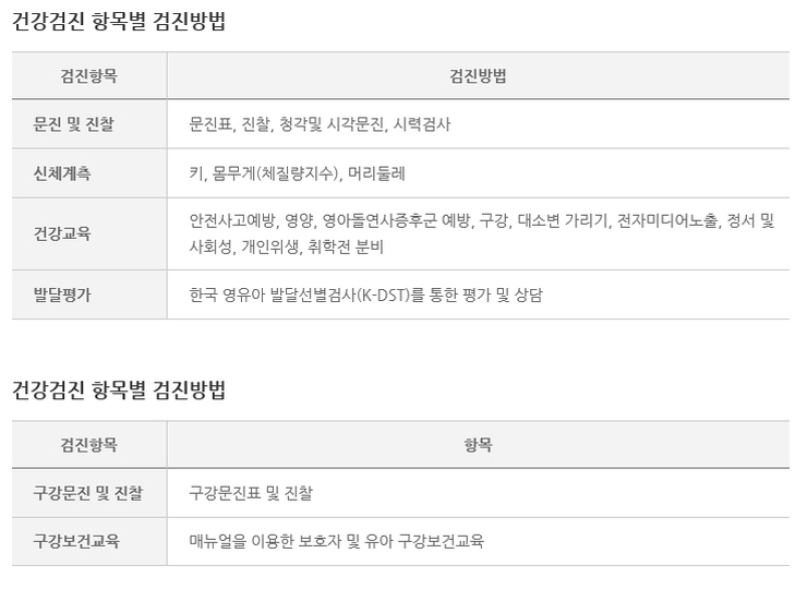 키와 몸무게, 머리둘레를 재는 신체계측은 기본으로 들어가고요. 문진표 내용을 토대로 의사선생님께서 아이를 살펴보시고 상담을 해주십니다. 신체계측 결과 이상, 시각 이상, 청각 이상, 발달 선별 검사 결과 이상이 보일 경우는 전문의료기관과 전문의에게 진료나 치료를 의뢰하고 있는데요. 제 지인의 아이는 성장지연이 심한 편이라 빈혈검사까지 받았다고 하네요.