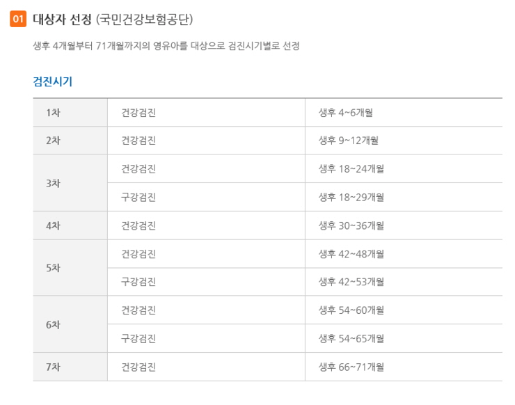 영유아 건강검진은 생후 4개월부터 71개월까지의 영유아를 대상으로 하는 성장 단계별 건강검진 프로그램인데요. 영유아의 성장과 발달 특셩을 고려한 검사이며, 발육지연이나 과체중 등 아이의 성장과 발달이상을 조기에 진단할 수 있고요. 검진을 통해 발견된 문제점을 조기치료할 경우에는 완치율이 매우 높아서 평생 건강한 삶을 유지할 수 있다고 합니다.