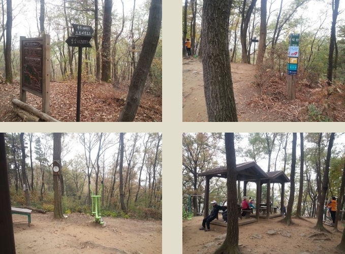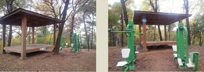 좀 오르면서 첫번째 나를 반겨준 것은 아늑한 쉼터와 운동기구 가족이나, 어르신들이 즐겨 찾아 운동할 수 있는 그런 분위기였다 평탄한 길을 쉽게 올라와 잠시 운동하고 마음을 정리 할 수 있는 그런 편안한 쉼터였다