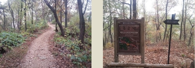 두 갈래 길 앞에 이정표가 나타나 고인돌 공원을 향하여 발 걸음을 옮겼다