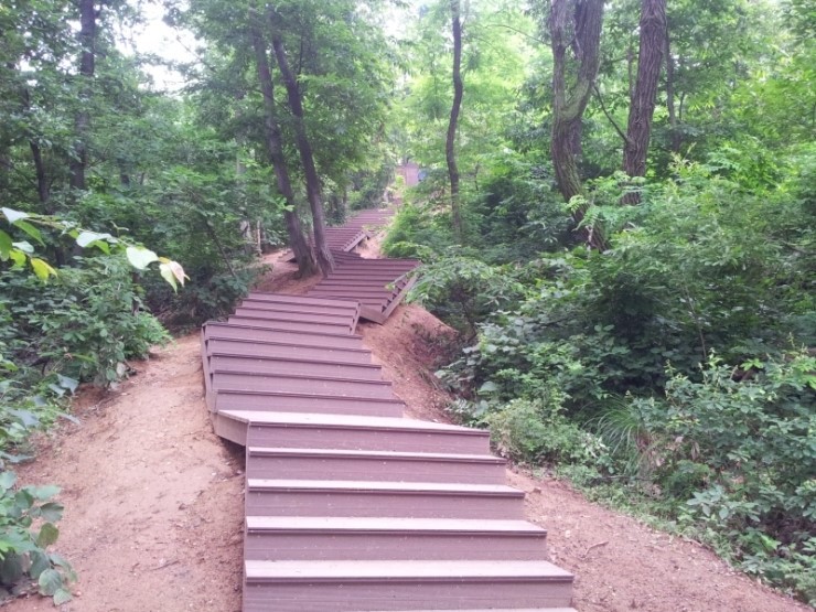 그러나 그 편안함 속에도 어려움은 있는 법 좀 오르다 보면 첫번째로 만나는 것이 124의 플라스틱 계단이다 계단은 올 봄에 만들어진 것으로 아주 튼튼하고 편안하게 만들어졌으나 초행자들은 호흡이 좀 가빠질 정도의 길이라 할 수 있다