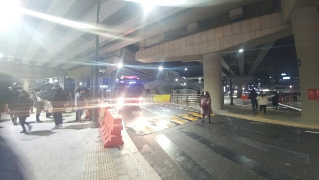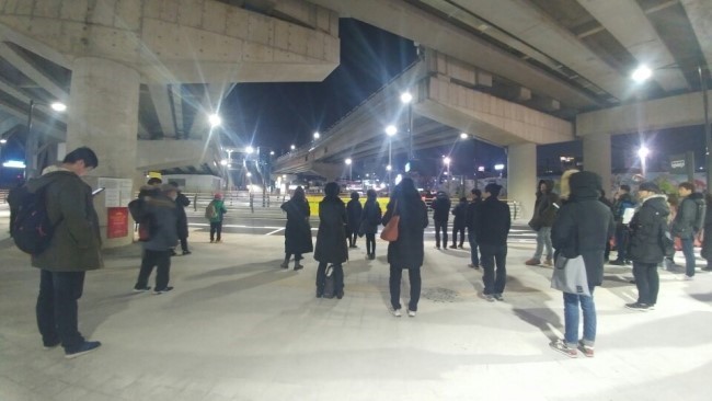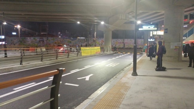 시내 버스를 타는 곳입니다. 안전에도 많은 신경을 썼으며 공간이 넓기 때문에 많은 사람들이 스스로의 공간을 확보하고 버스를 기다릴 수 있게 되었습니다.