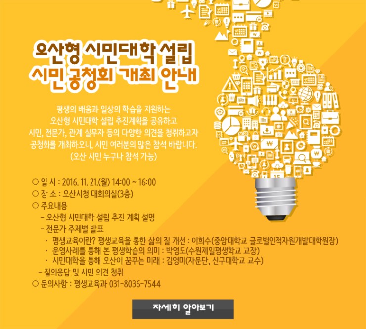 | 11월 21일 오산형 평생학습 시민대학 설립 시민공청회 안내<시민기자 김연주>; | |||||