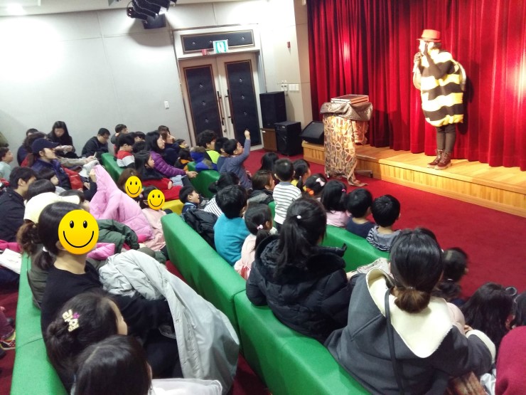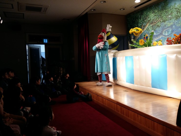 드디어 무대에 꿀벌아줌마가 등장해서 관중들의 주의를 환기시키고 함께 동요 "참 좋은 말"을 불렀습니다. 아이들과 부모들이 함께 불러 노래의 가사가 더 와 닿았습니다.