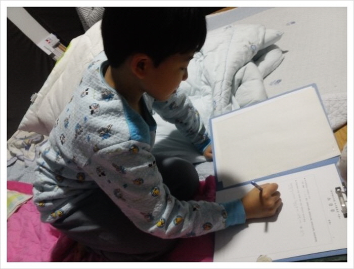 ![]() 하룻 밤을 보내고, 드디어 날이 밝았다. 아침에 눈을 뜨자 마자 큰아이와 둘이서 소감록을 작성하기 시작했다. ![]() 이불을 개고, 짐을 몽땅 꾸려서, 집으로 가려고 문을 열었더니, 새들도 지저귀고 햇볕도 쨍~