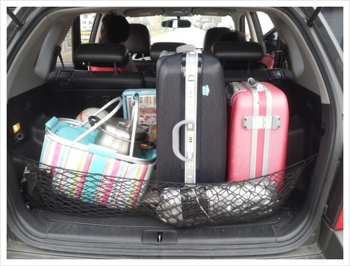 트렁크에 짐이 꽉 차 있는데, 사실 별거 없다. 잠옷, 세면도구 그리고 약간의 간식 (과일)이 전부다.
