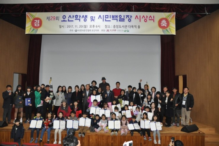 제29회 가을 문학축제 오산 학생 및 시민 백일장 시상식이 지난 11월 20일 중앙도서관 다목적홀에서 있었다. 오산문인협회(회장 박효찬) 주최로 매년 한글날이 있는 달에 개최되는 백일장 대회는 오산 학생과 시민들이 참가한다.