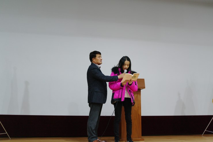 산문 부분 장원 양산초 6학년 이나연 학생이다. 상장이 수여된 후 각 부문별 장원자의 글을 낭송하는 시간을 가졌다. 이나연 학생은 올해 오산시민백일장 대회를 처음 알고 참여하였다.