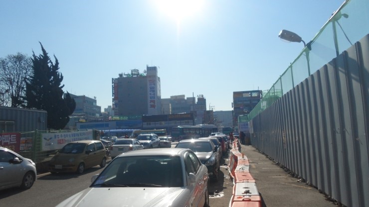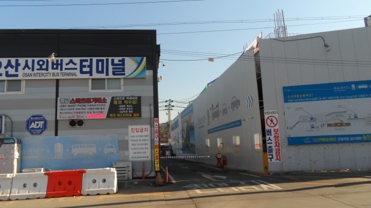 임시로 운영중인 버스터미널 쪽입니다. 이 부근 항상 붐비고 복잡하지요. 개인 차량 운전시에도 버스가 지나갈때까지 기다려야 하는 불편함도 있구요. 그러나 우리 오산시를 대표할 환승센터를 그려보며 잠시의 불편함을 잊어봅니다.