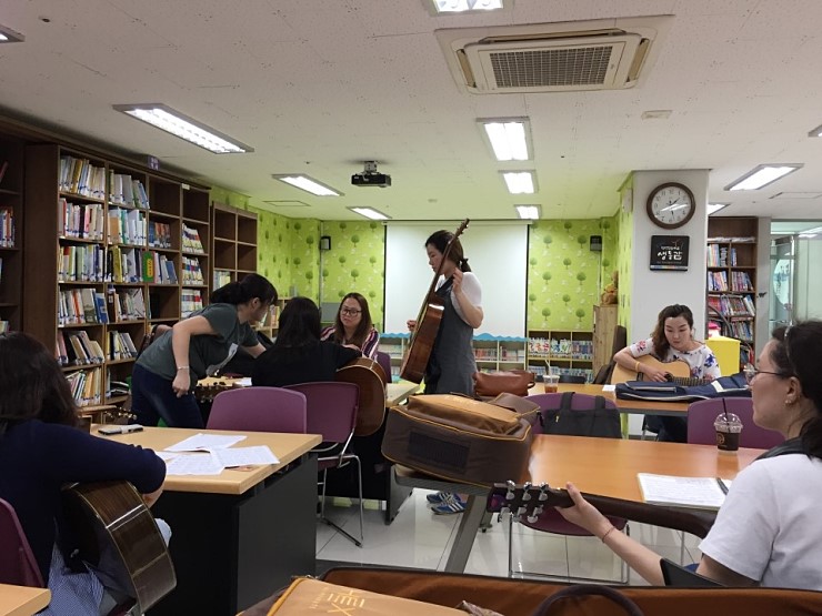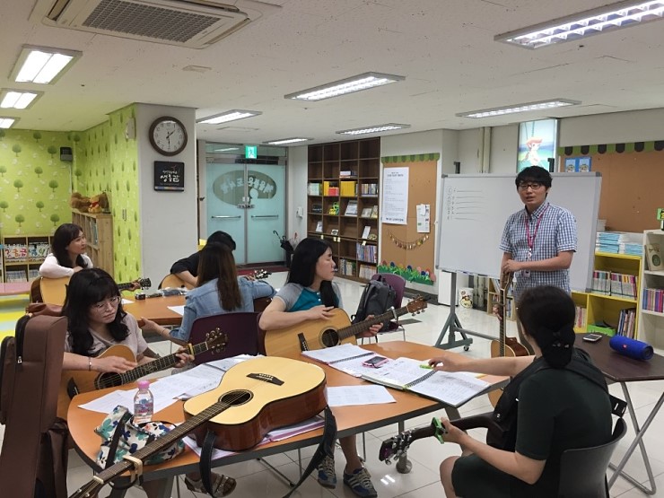 런앤런 배달강좌와 함께하는 ‘필통’ 『필봉초등학교 학부모 통기타 동아리 ‘필통’ 런앤런 배달강좌로 통기타 배우며 동아리 활성화』 올해로 3년째인 필봉초등학교 학부모 통기타 동아리 ‘필통’은 2016년 필봉 축제 학부모 기타공연을 위한 모임으로 시작되어, 아이들을 위해 축제 때 공연을 하고, 겨울방학 이벤트로 등교 시간에 아이들과 캐럴을 부르기도 했습니다. 올해도 동아리 활동이 시작되었는데요, 그동안은 사비로 강사를 섭외하여 수업을 들었으나, 올해는 오산시 런앤런 배달강좌를 이용해 보기로 했습니다. 왜냐하면, 런앤런은 무료이니까요~~^^