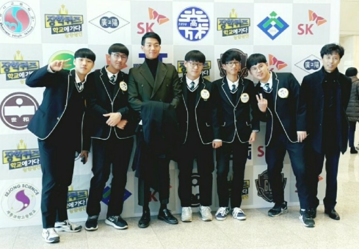 ▲ '장학퀴즈 학교에 가다 왕중왕전' 우승자 왼쪽부터 세마고 1학년 정새별, 이진규, 장성현, 정용훈, 이상 학생 지난 11월 18일, 일산 EBS신사옥에서 진행된 ‘장학퀴즈 학교에 가다 왕중왕전’에서 세마고 팀이 최종 우승을 차지하였으며, 부상으로 해외 문화 탐방 기회가 주어졌다.