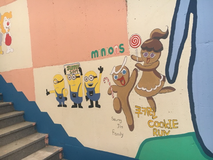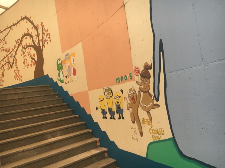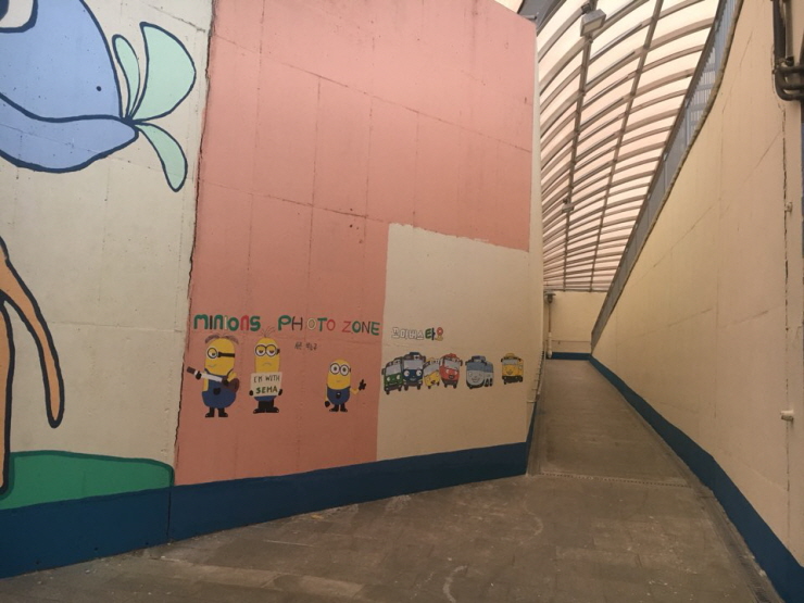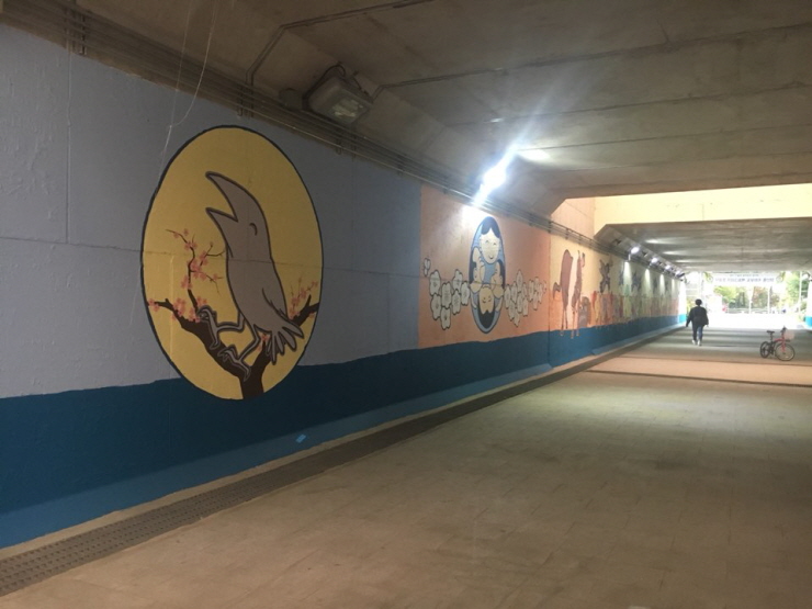 이 사업은 세마동 주민자치회가 주관한 <세마동 안심마을 만들기 사업>으로 이루어진 것입니다. 양산동 주민들에게는 정말 반가운 소식이 아닐 수 없습니다. 기존 지하보도의 어두컴컴하고 무서운 느낌은 모두 없어지고 아기자기하면서 예쁘고 멋진 벽화들로 가득 채워져 밝고 안전한 지하보도로 탈바꿈하였습니다.