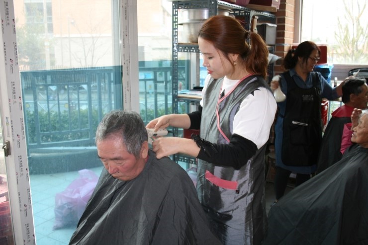 지난 3월 8일 오산 자원봉사센터의 세교 미용봉사자들이 세교 3단지 안의 노인정을 찾아가 어르신들의 머리를 예쁘게 손질해드렸습니다. 세교지구 미용봉사자들은 세교 3,4단지와 7.8단지를 한 달에 한 번씩 방문하여 어르신들을 대상으로 미용봉사를 한다고 합니다.