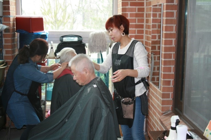 미용실 운영의 경력이 있는 경력자들이며 가지고 있는 재능을 도움을 필요로 하는 사람들에게 나누어 주는 봉사정신으로 일을 하는 분들입니다. Give and take의 명제아래 이루어지고 있는 우리 삶에서 훈훈한 온정을 나누는 이분들의 모습을 보니 고개가 숙여집니다.