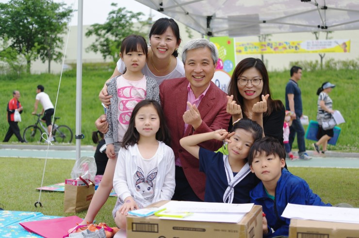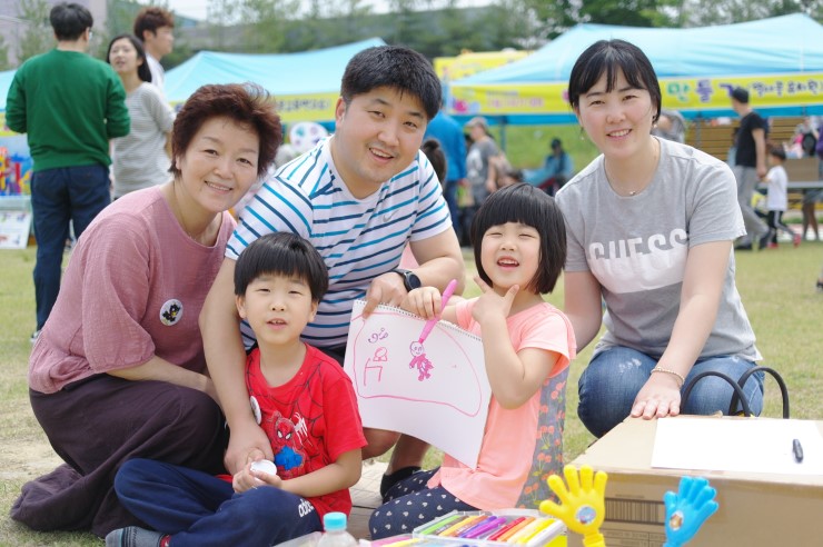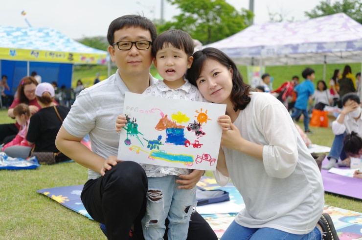 맑고 아름다운 도시, 생태하천 오산천 그림 그리기 대회를 찾은 정경준(9), 정고은(7) 가족의 모습이다. 정고은 어린이의 어린이집에서 주었던 그림 그리기 대회 홍보지를 보고 참여하였다고 하였다.경준이와 고은이는아빠가 적극적으로 행사 참여 의지를 보여주어서 행복하게 참여할 수 있었다고 하였다. 무엇보다 할머니까지 모시고 대회장에 올 수 있어서 더 기쁘다고 말하였다.