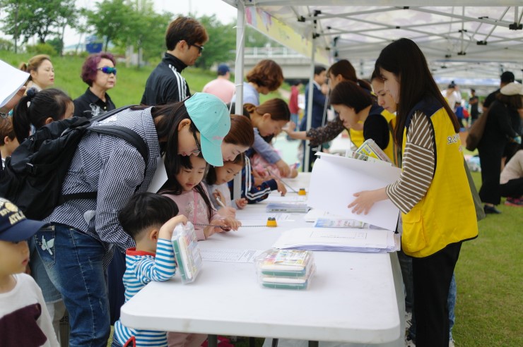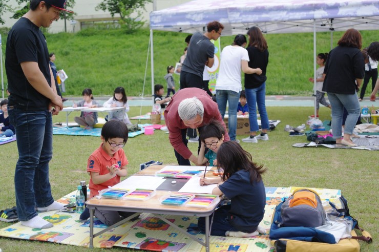 ▲ 오산천 그림 그리기 대회에 많은 오산시민이 참여하였다. 특히 가족단위로 대회에 참여한 시민들이 많았다.