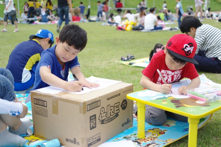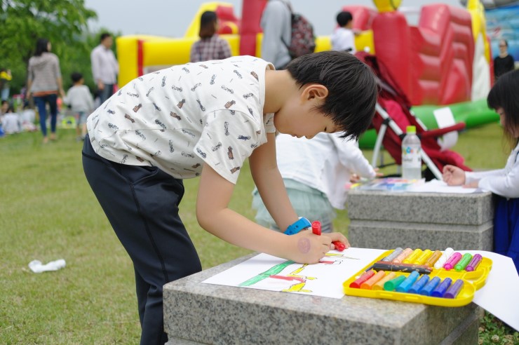 ▲ 그림을 완성하고 자리를 정리하고 있던 가족을 사진에 담아 보았다. 고사리 같은 손으로 정성스럽게 그린 아이의 그림에서 순수함이 묻어난다. 동심의 세계를 다시금 보는 시간이다.