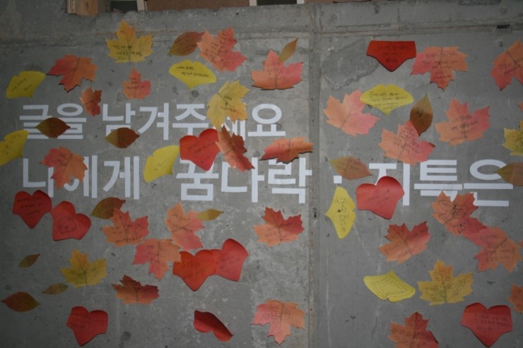▲ 한쪽 벽면에는 종이에 글을 남기는 공간도 있었는데요.