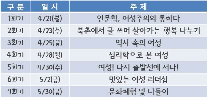 | 중년 여성을 위한 오산시 인문학 강좌 | |||||