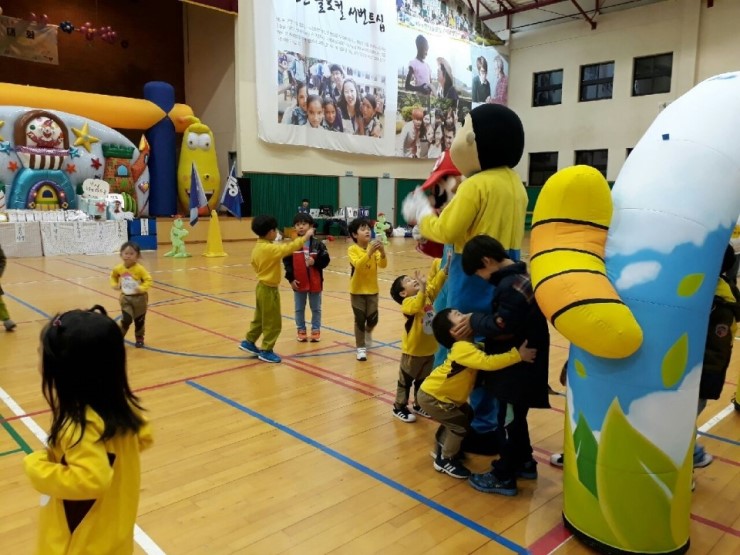 행사가 시작되기 전에는 친구들이 좋아하는 짱구, 라바 등 귀여운 캐릭터들과 악수도 하고 안아보기도 하며 재미있는 인사를 나누고 사진도 찍고 즐거운 시간을 보냈습니다.