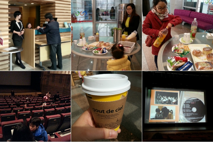 아이부터 어른까지 무조건 1명당 3,000원이에요. 영화 3편을 봐도 9,000원... 일반 극장에서 1편 볼 수 있는 금액이죠?? ^^ ![]() 표를 구입한 후 옆에 마련된 테이블에서 제공되는 커피와 음료, 빵과 과자를 드실 수 있어요. 저희는 영화 상영 10분 전에 도착해서 커피를 한 잔 마시고 들어갔어요.