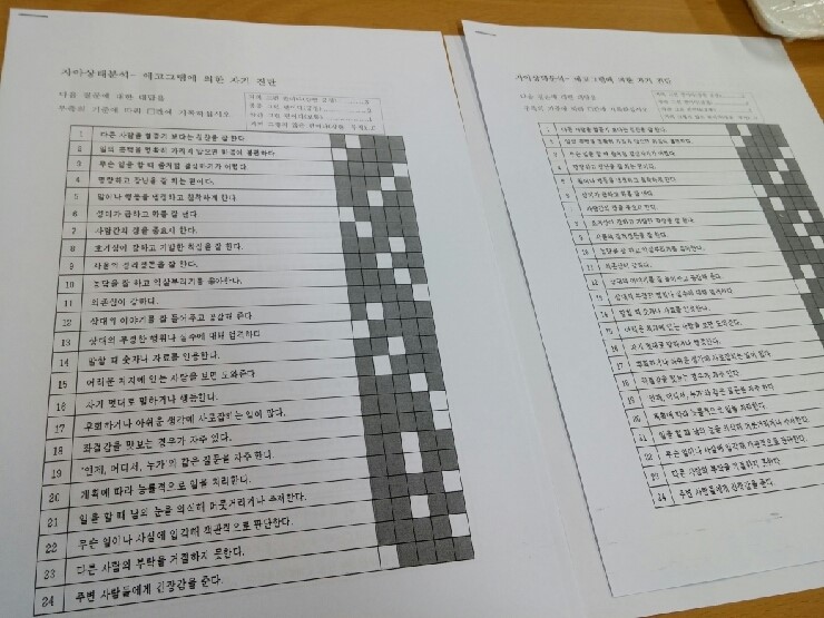 ▲ 먼저 나를 알기 위해서~~ 자아상태 분석- 에고그램에 의한 자기진단을 실시합니다.