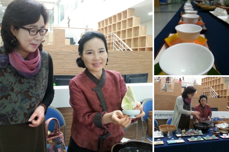 홀에는 궐리사차회에서 다도서비스를 하고 있었습니다. 허은희회장과 다도를 배우는 회원이 함께 준비를 하고 있었는데요. 예쁜 찻잔에 담긴 차는 도서관을 찾은 시민들의 마음도 아름답게 해주는 듯 했어요. 허은희회장은 현재 런앤런 다도예절 강사로도 활동을 하고 있다고 합니다.