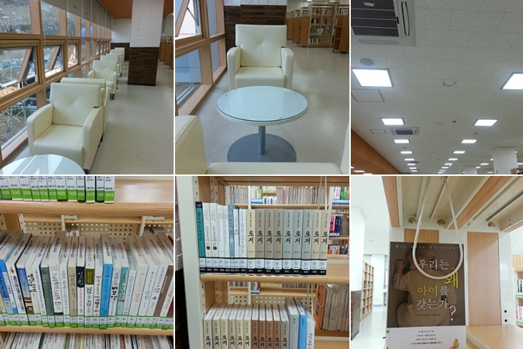첫째 모든 책이 새 책이라는 것 둘째 쇼파가 있다는 것 셋째 장편, 대하소설의 1권이 있다는 것 넷째 깔끔한 북엔드였어요... ![]() 열람실에서 책을 읽는 공간이 폭신한 쇼파여서 참 좋았어요. 앉아보니 정말 편안하더라고요. 부작용은 책을 읽다보면 잠이 솔솔 올지도 모른다는 것!!! ^^ ![]() 꿈두레 도서관에는 어린이 강좌실 1개와 3개의 문화강좌실이 있습니다. 지하에는 다목적홀이 있어서 시민들을 위한 공연을 하게 됩니다. 지하 주차장도 여유있어 보입니다.