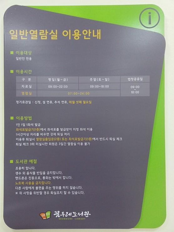 꿈두레 도서관 홈페이지가 아직 정식 개설되지 않아서 열람실 이용방법을 모르실 것 같아 이용방법 사진을 함께 올려드려요...