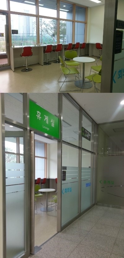 열람실 옆에는 식사 시간에 이용가능한 휴게실이 있는데, 창 밖을 바라보며 밥을 먹으면 공부하느라 무거웠던 머리도 맑아질 것 같아요. 어여들 도시락 챙겨들고 공부하러들 오세요...^^