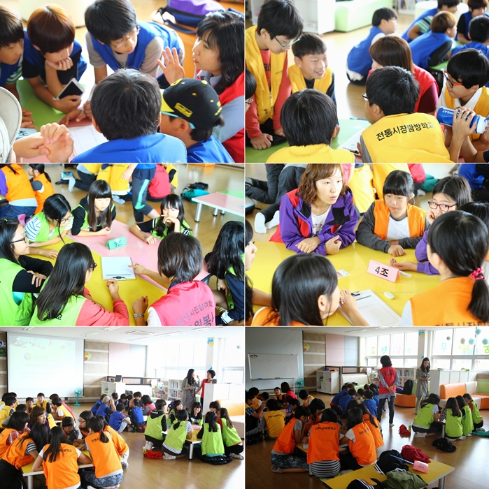 재래시장에서 구입한 먹거리들로 함께 간식시간을 가졌다. 방울 토마토, 진미채, 꿀떡, 두부 등 하나도 남김없이 싹싹 비운 아이들. 역시 돌도 씹어먹을 체력을 가진듯 하다. 그렇게 시민참여학교 전통시장 탐방을 끝내고 아까와 마찬가지로 자봉쌤들의 인솔로 혁신교육 지원버스에 오른 아이들.