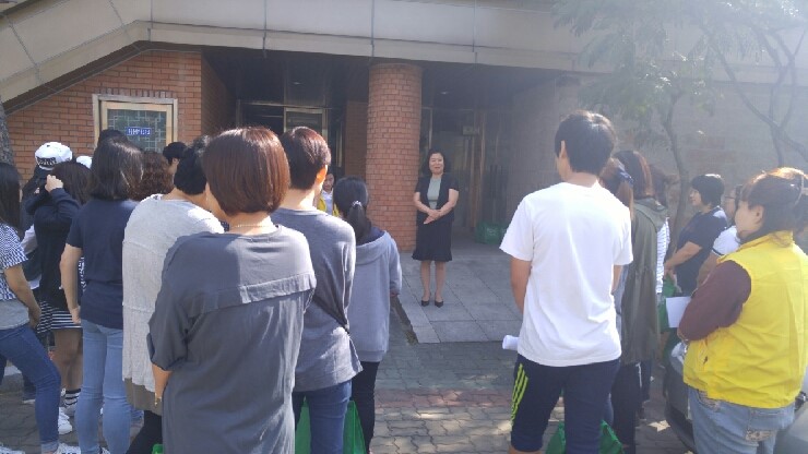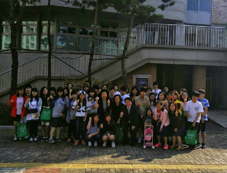 ▲ 세마중 세교(世交) 누리단 독거노인 자택으로 출발 전 모습 가족봉사단 방문을 받는 독거노인 한분은 “처음에 학교엄마들이 찾아와서 반찬 배달을 해주고 학생들과 말벗봉사를 해준다고 했을 때는 반찬만 주었으면 싶었다. 그러나 정기적으로 학생들이 찾아와 내 손자, 손녀처럼 청소도 해주고 말벗도 해주니 정이 들어서 이제는 네 번째 토요일이 기다려진다. 아이들이 돌아갈 시간이 되면 눈물이 나기까지 한다.”며 소감을 밝혔다.