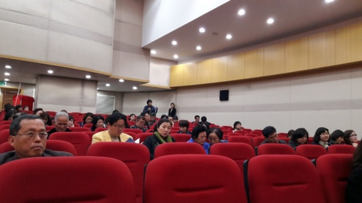 박영도수원제일평생학교 교장선생님은 수원제일평생학교 내 성인문해교육의 현황으로 문을 열었는데요. 저학력 성인이나 비문해자, 다문화인, 국외이주자 대상으로 하는 것이 일반적 성인문해교육인데, 문해교육에서 시작했으나 나중은 삶의 공동체나 사회공동망 형성에 되었다고 하였습니다.