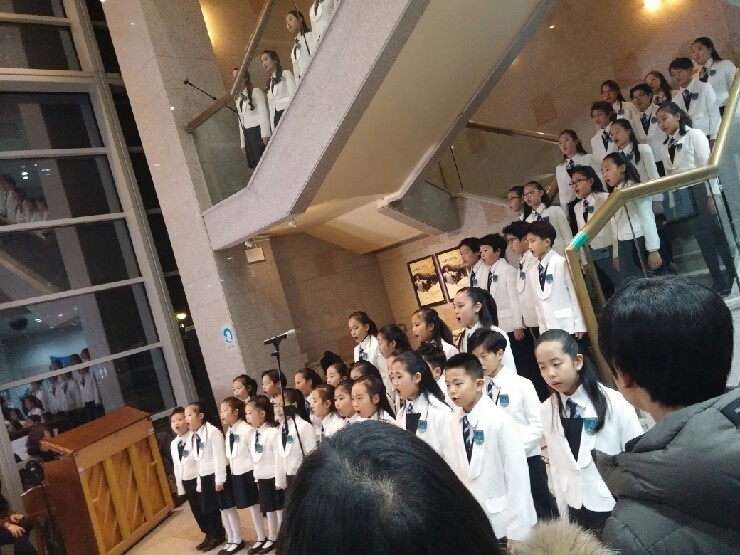 오산청소년합창단이 시민 한 분 한 분을 고운 목소리로 영접하고 있었습니다.