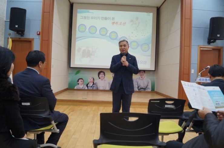 곽상욱 시장은 시정설명회에서 "지난해 어려운 여건 속에서도 채무 제로의 초건전 시 재정 달성을 기반으로 올해 하반기에는 ‘교육도시 오산'을 상징하는 우수 프로그램의 시행 확산을 통해 명실공히 대한민국 대표 교육도시로의 성장하기 위한 시민대학을 출범하여 지역 리더를 양성할 것이며 100년 오산을 위한 계획의 출발이 시작되었다"고 말했다. 또, 우리나라에 두 곳뿐인 역사 유적지 궐리사에 교육의 터전 학당을 올해 9월 준공하여 평생교육을 위한 공간으로 제공할 것이며, 무엇보다 시민이 안전한 삶을 유지할 수 있도록 U-city 기능을 활용하여 범죄 없는 안전 도시 오산을 만들겠다고 말했다. 가장 제3산업단지 조성 사업 등 굵직한 성과를 소개하며 경쟁력 있는 지자체로 성장하기 위한 오산시의 노력과 성과를 설명하였고, 세교2지구 건설 공사 진행으로 1만 7천 500세대, 4만 3천 명의 시민을 유입하는 향후 계획 등 주민 관심 사항 및 건의 사항에 대해 주민과 대화를 나누었다. 주민 건의 사항은 시장과 주무담당이 구체적으로 해결방안을 설명해 주었다. 곽상욱 시장은 “이번 동 순회 방문을 통해 접수된 의견은 아무리 작은 것이라도 귀 기울여 시정에 반영하고, 현장 중심의 소통행정을 통해 시민의 불편을 줄이기 위해 노력하겠다”고 밝혔다. 다음 시정 설명회는 대원동에서 가질 예정이다.