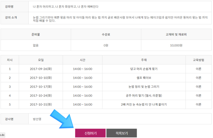 강좌에 대한 간략 소개가 있고, 담당 플래너 이름과 전화번호가 있습니다.