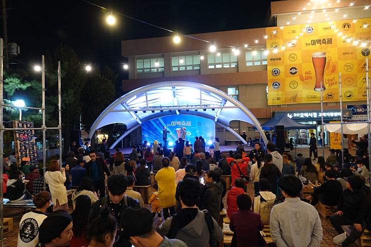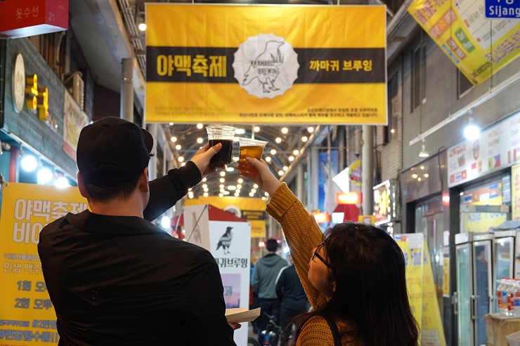 "야(夜)"시장에서 열리는 수제"맥(麥)"주 축제인 "야맥축제" 제5회 야맥축제가 오산 오색시장에서 10월 19일부터 21일까지 열렸다. 전국 대표 전통시장으로 자리매김한 오색시장에서 열리는 야맥축제는 행사 기간을 3일로 연장하여 행사 구간을 빨강길, 미소거리, 고객지원센터까지 확대했다. 축제에는 전국 각지에서 수제 맥주 브루어리( brewery)들이 모여 축제에 참여한 시민들이 여러 가지 맥주를 시음할 수 있었다. 다양한 체험 거리와 젊은 고객들이 선호하는 숯불 양 꼬치, 소떡소떡, 큐브 스테이크, 케밥, 새우튀김, 만두 등 다양한 먹을거리로 참여한 시민들의 입맛을 돋우었다. 오색시장 야맥축제는 매년 5만 명 이상이 찾는다. 전국 맥주 마니아들이 모이는 야맥축제는 전통시장을 공간으로 전 연령층이 이곳을 찾아 함께 즐기는 독특하고 특별한 축제이다. 빨강길에는 가족 단위로 체험하고 즐기는 부스가 운영되고, 고객지원 센터에서는 다채로운 공연들이 계속 진행되었다. ![]() ▶ 야맥축제 마지막 날 저녁 풍경이다. 오색시장 고객지원센터 앞을 조명으로 환하게 비춰 가을 맛을 낸 후 공연과 준비된 음료와 담소로 멋을 낸다. 현장에는 첫날부터 많은 시민들이 모여서 공연을 관람하며 축제를 즐기고 있었다. 사단법인 오산 오색시장 상인회 주최로 진행되는 축제는 가족 단위, 친구, 동기들 모임 등 다양한 연령층들이 한데 모였다. ![]() ![]() 전문 사회자 진행에 맞춰 준비된 공연이 시작되고 시민들은 공연을 관람하였다. ![]() KBS 방송 6시 내 고향 팀에서 방송 촬영하는 모습이다. 축제 현장, 첫날에 방문했을 때 숯불 양 꼬치 상가에 방송국 사람들이 모여서 촬영을 하고 있었다. 현장에는 많은 시민들이 줄을 지어 간식으로 먹을 숯불 양 꼬치를 기다리는 중이었다. 축제 3일 동안 이곳은 늘 기다리는 사람들로 북적였다. ![]() ▶ 앰앤지식품 김춘도 상인과 가족 모습이다. ![]() 축제 기간 오색시장에서 만난 상인들 모습이다. 앰엔지 식품(위) 김춘도 상인은 오색시장 축제에 시민들과 함께 즐기고 축제 현장에서 오산시민들을 자주 만날 수 있어서 행복하고 즐겁다고 소감을 전했다. 많은 시민들이 줄을 지어 쌀쌀한 가을밤에 이곳에서(아래) 따뜻한 어묵과 튀김 음식을 먹으며 추운 몸을 녹이기도 했다. 3일간의 축제를 치르면서 피곤했을 텐데도 환한 미소가 인상 깊었다. ![]() ![]() 전국 각지에 모인 맥주 브루어리에 대한 소개가 빨강길에 붙어있었다. 이번 축제에는 서울, 부산, 강릉, 대전 등 전국 21개 브루어리에서 생산한 100여 종이 수제 맥주가 있었다. 축제 장을 찾은 시민들에게 수제 맥주의 종류와 공장에 대해 정보를 공유하는 야맥축제 상인회 진행팀의 세심한 손길을 엿볼 수 있었다. ![]() ▶ 대전에서 찾아온 수제 맥주 브루어리 팀이다. ![]() ![]() ▶ 야맥축제에 참여한 모습이다. 시음과 함께 판매를 함께 한다. 까마귀 브루잉은 오산 오색시장에서 론칭한 로컬 브루어리로 오산시민과 오색시장 상인, 브루마스터가 함께 맥주를 연구하고 개발하고 있다. ![]() ![]() 까마귀 브루잉은 지혜와 효의 상징 까마귀를 마스코트로 했다. 오산시는 2013년 오색시장으로 이름을 변경하고 문화관광형육성사업 일환으로 수제맥주 콘텐츠를 재래시장 안으로 들어놓았다. 청년 소설벤처가의 수제 맥주 집 '살롱드공공'이 만들어지고 상인들과 함께 맥주를 배우고 마시는 체험 공방도 만들어진 바 있다. 까마귀 브루잉에서는 오로라, 까마귀, 코브라를 만날 수 있는데 오로라는 까마위 부르잉의 대표 맥주이다. 상인들은 20주간 양조 교육을 받고 만든 맥주라는 점에서 의의가 있다. ![]() 수원에서 찾아온 오지영 씨는 오산에 살고 있는 방영운 씨와 야맥축제를 즐겼다. 근거리에 있어서 오산에 자주 오게 되는데 축제를 참여하면서 우리나라에 많은 맥주 종류가 있다는 사실에 놀랐다고 하였다. 포장마차에서 이야기를 풀어가는 것처럼 친구와 함께 추억을 만들어가는 데 있어서 가을밤 정취를 만끽했다고 소감을 말해 주었다. 다소 아쉬운 점은 스탬프 이벤트가 있었는데 다 하기엔 벅찼다고 하였다. 고객 지원센터는 오색시장을 방문하는 고객들의 불편함을 해소하고 편리한 쇼핑 환경을 제공한다. 오산 시민들과 상인들의 휴식과 문화 공간으로 제공된다. 이곳 야외무대에서는 다채로운 장르의 공연들이 축제 기간에도 펼쳐졌다. ![]() ![]() 축제 마지막 날 오색 시장 상인들이 준비한 난타 공연 모습이다. 신명 나고 경쾌한 북소리가 오색시장에 울렸다. 현장의 시원한 분위기를 만드는데 안성맞춤이었다. 깊어가는 가을 문화가 상인들의 신명 난 북소리와 함께했다. 서로 화합하고 함께 공유하며 나누는 문화 거리였다. 가을과 문화와 공연이 공존하는 오색시장 축제 현장은 3일간의 대장정을 마무리하며 축제 흥겨움이 저물어갔다. ![]() 상인들은 공연을 마친 후 함께 이곳에서 뒤풀이를 하며 서로를 다독여보는 시간을 가져 보았다. ![]() |