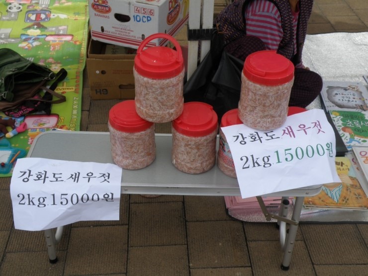 그 중에 죽미체육 공원과 달리 눈에 확 들어 온 것이 있었다. 할머니의 새우젓! 지금까지 내가 본 것은 어린아이들의 옷과 장난감들이 대부분이었기 때문에 할머니의 새우젓은 나의 눈에 보배 같이 보였던 것이다 할머니가 하나 사라고 하셨는데 ~~~~ (할머니 매우 죄송~~~ 들고 다닐 수가 없어서 ^^^)