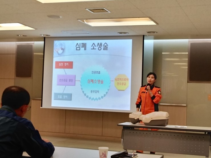 | 4월 9일 오산시 롯데인재개발원에서 오전9시~12까지 3시간 동안 자율 방재단 70여명의 교육이 실시되었다. 곽상욱 시장은 인사말에서 “지진, 바이러스등 안전을 지키기 위한 안전체험관을 경기도에서 우리 오산이 유치하게 되었다. 매뉴얼에 따라 체험을 해보는 것과 안 해본 것은 천지차이다. 오산은 방재단 활동이 잘되고 있다. 교육이 유익한 시간이 될 것이다”고 말했다. ![]() 총 3강중 1강은 심폐소생술로 이론과 실전이다. 심장과 폐를 소생시키는 것으로 5분 안에 이루어져야한다. 더 좋은 방법을 찾기 위해5년 마다 방법이 바뀌기 때문에 교육을 받는 것이 중요하다. 팔 힘이 아닌 허리와 어깨 힘으로 팔꿈치를 펴고 누른다. 요즘은 인공호흡은 안하고 심장압박만 해도 된다. 우리는 2분 동안 실시했어도 힘이 드는데 구급대원들은 20분 동안 실시한다고 한다. 자동 제세동기는 어디에 있는지 위치를 알아두어야 하며 사용법을 익혀야한다. 2강은 지진 발생에 따른 구조 활동과 예찰활동의 중요성, 지역방재단의 역할, ‘질서’와 ‘배려’에 대한 강의와 3강 비탈면 안전성 및 유지관리방안으로 절토사면과 옹벽 등에 관한 설명 순으로 이어졌다. ![]() ![]() 가까운 일본은 지진발생시 나는 어떻게 할 것인가를 알고 있다. 각자 나의 역할이 주어졌다. 예를 들어 난 화장실담당, 난 옷 준비 등이다. 위급시 행동강령 교육이 필요한 부분이다. 삶속에서 안전과 관련된 교육은 중요하다. 재난 안전 체험관이 유치되면 시민과 학생들이 체험할 것이다. 또 체험관이 지어질 옆의 내삼미동 서울대 부지에 아스달연대기(중국권 수출을 위해 아사달 대신 아스달사용)드리마 세트장이 지어질 것이다. 판타지 액션 사극으로 2019년 상반기 tvn방송예정이다. 미니어처 전시관과 함께 지하철1호선, 국도1호선, 북수원lc등 광역교통망이 우수하여 관광객 유치도 기대된다. ![]() ![]() |