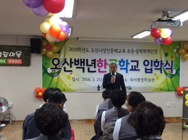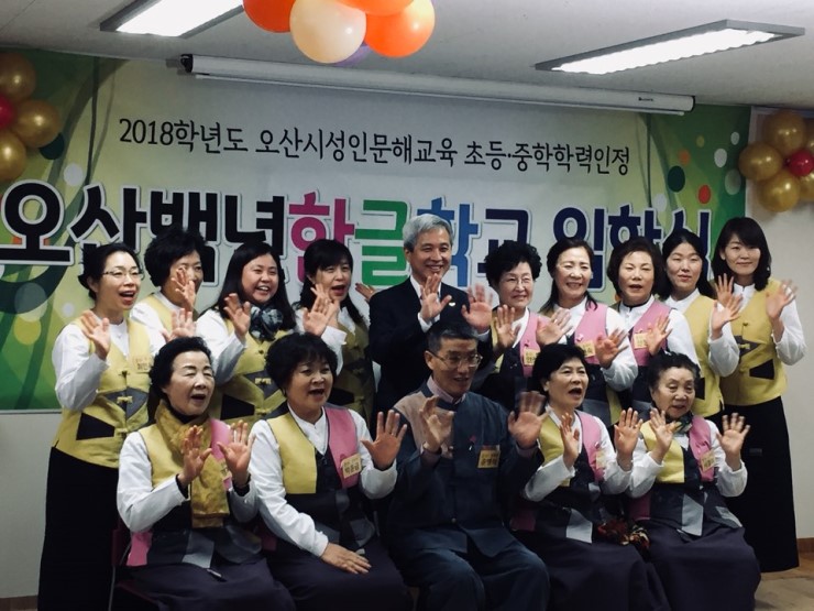 지난 3월 21일(수) 오전 10시 세교 죽미평생학습관에서는 오산백년한글학교 입학식이 열렸다. ![]() 오산백년한글학교는 오산시 성인문해 교육을 담당하는 문해학교다.이 날 행사에는 곽상욱 오산시장을 비롯하여 문해교사, 죽미학습마을위원장외 마을관계자가 신입생들의 입학을 축하하기 위해 참석했다. 문해 교사들이 준비한 우쿨렐레 공연을 시작으로, ![]() 시장님의 격려 인사말을 듣고, ![]() 입학을 축하하고 얼굴을 익히는 다과회 시간을 가졌다. ![]() 문해 교육은 평생교육의 기초가 되는 교육으로, 여러 사회적 여건으로 배움의 기회를 놓친 성인학습자들에게 교육 기회를 제공함으로써, 학습자의 생활능력을 높이고 사회참여기회를 넓혀 함께 더불어 살아가는 사회를 만드는 역할을 한다. 문해 교육 프로그램은 한글 교육뿐만 아니라 일상생활과 연계한 다양한 재량활동 및 체험학습 등의 특별활동으로 구성되고, 수업료는 전액 무료이고 교과서도 무상으로 지원된다. 특히 학력 인정과정의 경우 3단계 이수 시 교육청으로부터 학력 인정서를 발급 받는다. 올해 죽미학습관에서 열리는 학력인정교실은 초등 3단계와 중학 1단계이며, 주 3회 수업으로 1년 동안 초등 3단계는 240시간, 중학 1단계는 450시간의 수업이 진행된다. 초등 3단계를 마치면 초등학력 인정을 받고 중학 단계로 진학할 수 있다. 중학 단계는 국어, 수학, 영어, 사회, 과학 교과와 창의적 재량활동으로 구성된다. ![]() 예쁜 한복을 입은 입학생들의 미소가 아름다운 날이다. 학습자 모두 학업을 끝까지 마치고 환하게 웃으며 졸업식 할 그 날을 기다려본다. (오산백년한글학교 교육문의: 오산시 평생교육과 031-8036-7542) ![]() |