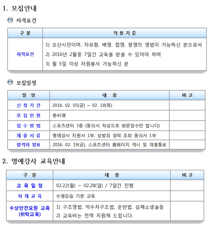 | 오산시 수영교육의 핵심인 명예강사로 도움주실 분을 찾아요<시민기자 김유경>; | |||||